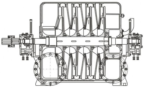 Многоступенчатые компрессорные узлы генерируют стабильный поток рабочей среды без пульсации. При необходимости объем транспортируемого воздуха или газа можно регулировать дросселированием или перепуском компримированной среды в область всасывания. Число ступеней компримирования определяется количеством рабочих колес (от